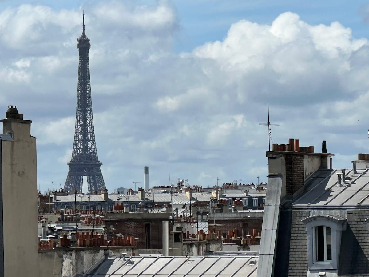 Cet appartement emplacement idéal proche de tous les sites et facile d’accès par les transports en commun ou à pieds. Le logement entier de 75 m², pièce à vivre avec cuisine ouverte toute équipée. Espace salle à manger avec table et chaises Lumineux, vue exceptionnelle sur les toits de Paris et la Tour Eiffel. Deux chambres indépendantes une donnant sur la terrasse avec salle d’eau, l’autre avec sa salle de bains. deux wc. Idéal pour deux couples.
