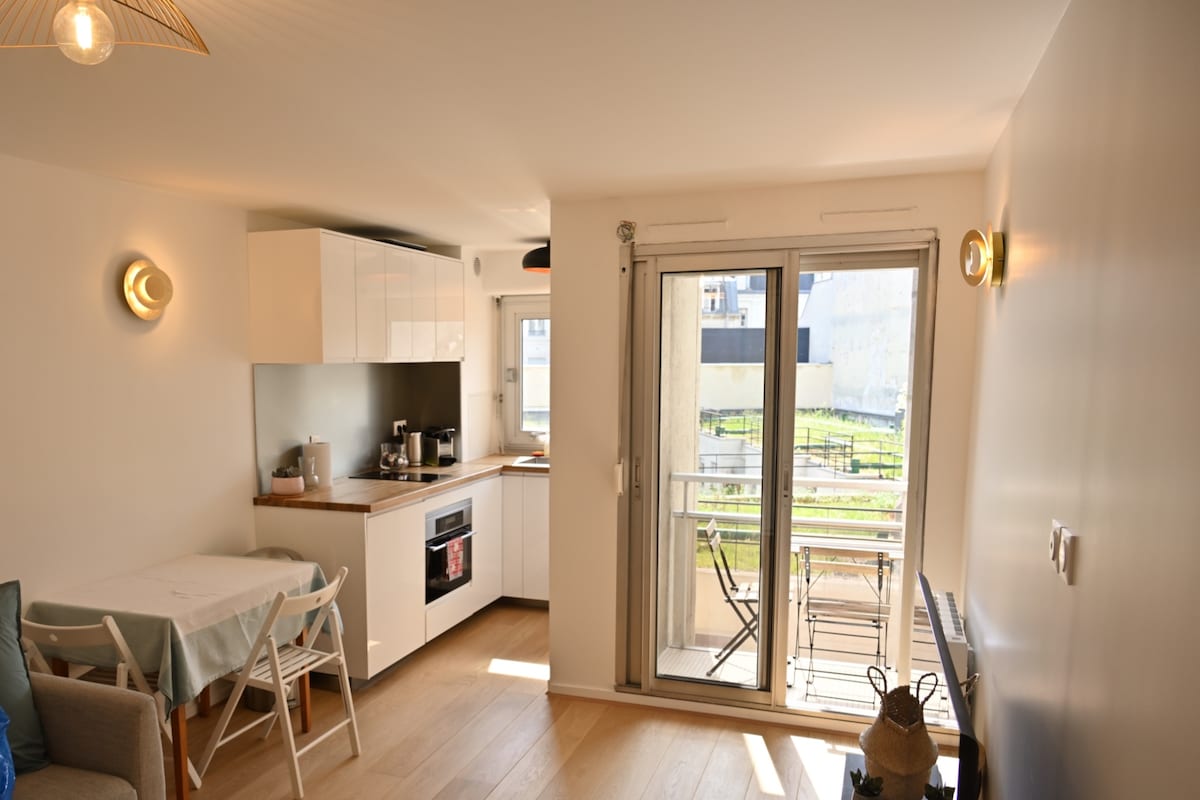 Cet appartement se compose de deux pièces avec une cuisine à l’américaine, d’une chambre spacieuse avec un lit de 160cm et une grande salle de douche attenante. Le salon dispose d’un canapé lit en couchage d’appoint (120cm) Les WC sont séparés. Un petit jardin partagé vous permettra de prendre vos repas dehors en toute tranquilité. Le quartier est très charmant, calme et vivant. Entre les lignes 2 et 14, vous pouvez rejoindre toutes vos destinations en un temps record!
