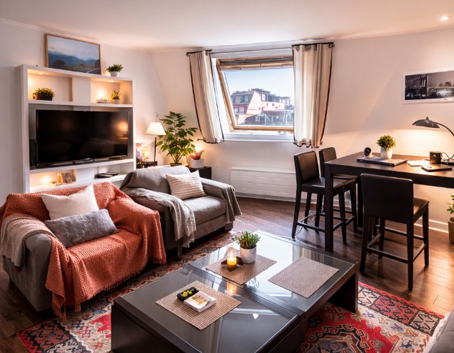 ✨ Welcome to your loft with a breathtaking panoramic view of Sacré-Cœur in Montmartre This bright, beautifully appointed loft blends Parisian charm with modern comfort • 🛏️ Comfortable sleeping areas • 🌇 Large windows / viewing area with a spectacular, direct view of the iconic Sacré-Cœur • 📺 Cozy living area, perfect for relaxing after a day exploring Paris • 🍷 Fully equipped kitchen, so you can enjoy meals just like at home • 📍 An exceptional location