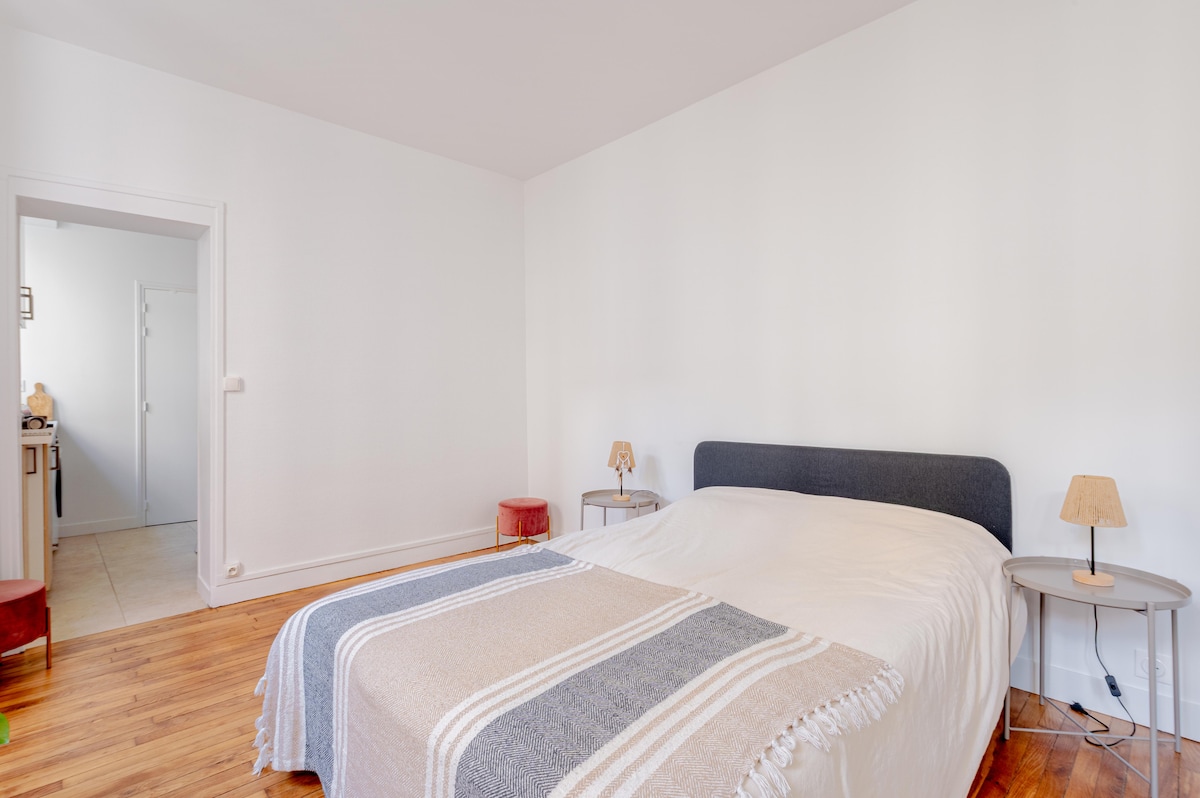 Logement lumineux, pratique, bien équipé avec terrasse sur jardin pouvant accueillir 2 personnes, situé aux pieds du tramway T2, bus 72 et metro ligne 10 Le logement Type de logement : studio Surface du logement : 25 m2 → Espace à vivre : Lit king size (160 x 190 cm - qualité hôtellerie), placard intégré, avec chaise de travail → Espace cuisine : intégralement équipée → Espace salle de bains : Douche à l’italienne, Lavabo, sèche-serviette, WC séparés