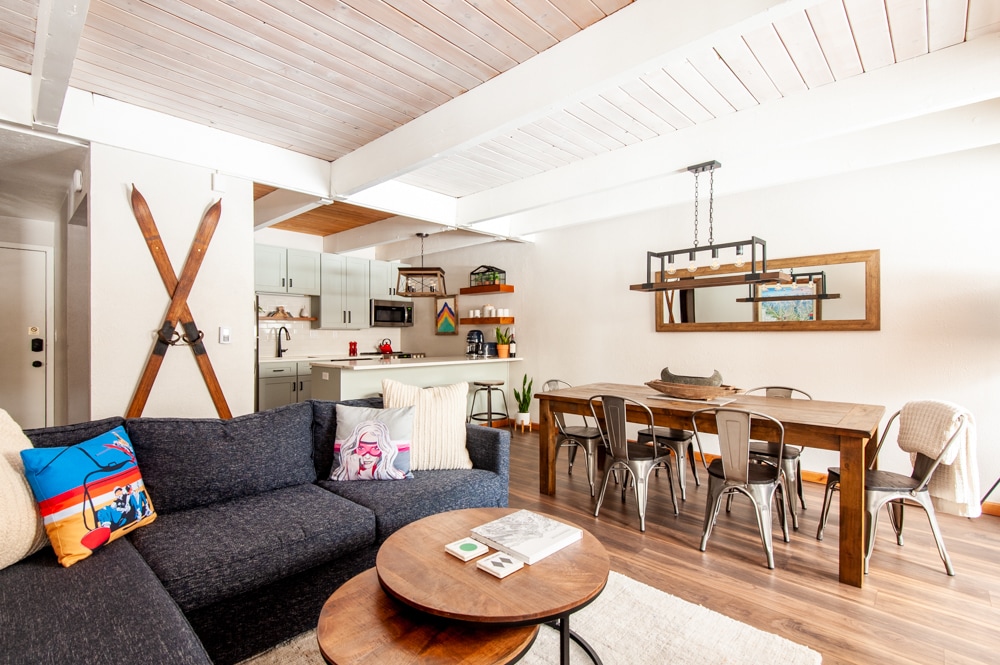 Please note. Early check in/Late check out not available. Kick back and relax in this calm, stylish space. Our warm and welcoming condo is nestled in a quiet but convenient area very close to lifts and town. Cozy up to the gas fireplace, Relax on the covered deck Adirondak chairs with coffee or a cocktail. Use the provided robes to take an easy stroll to the pool and hot tubs after a day of skiing or hiking. Mountain luxury is just a click away!
