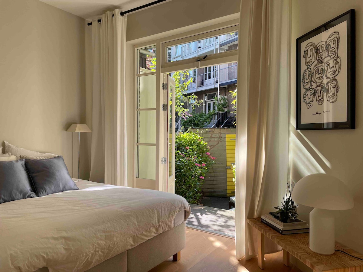 This unique, renovated, cosy and stylish decorated apartment is located in the souterrain of a historical canal house at a quiet green park. In the house you've your own entrance with key. The bedroom is located in the back of the appartment, overlooking the quiet green garden. You may start your day with a coffee in the sun on the bench in front of the house. The place is very comfortable and suits your needs visiting Amsterdam. Shops, musea, restaurants are within walking distance.