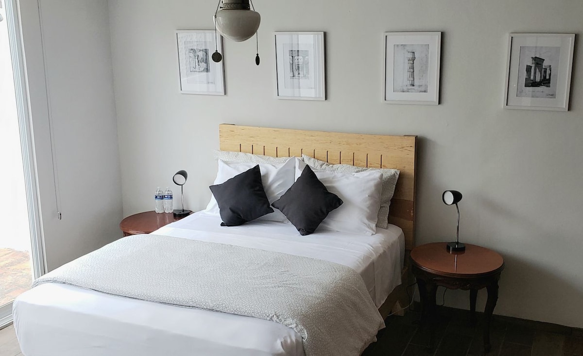 - Acogedor y exclusivo estudio ejecutivo con cama queen-size, escritorio y aire acondicionado. - Balcón para tomar aire fresco. - Cocina equipada. - Ingreso con cerradura inteligente y clave personalizada y exclusiva para cada huésped. - Rooftop panorámico con restaurante en el nivel 9. - Sala de juntas equipada para reuniones profesionales (consultar disponibilidad). - Acceso 24/7 con código personalizado. IMPORTANTE: No contamos con estacionamiento privado dentro de la propiedad.