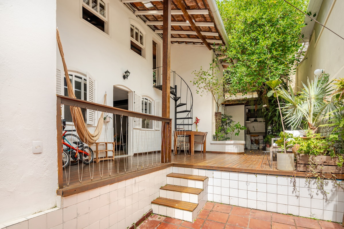 Moramos numa casa deliciosa na rua que divide Glória, Catete e Santa Teresa. Em 2013 anunciamos no Airbnb um apto independente que tínhamos aqui ocioso. Depois, uma casinha que construímos para receber amigos ingleses na Copa de 2014, e agora chegou a vez de anunciar esta outra que acabamos de reformar e ficou deliciosa, com direito a um deck privativo e uma copinha de apoio. O acesso se faz pelo jardim ou pela casa principal. As áreas comuns são amplas e arejadas, sem risco de aglomerar!