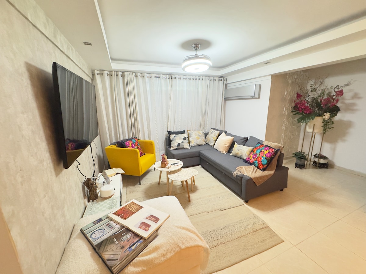 This apartment is located in the heart of the city, where you will have everything a few minutes away. It has 2 bedrooms, each with private bathroom, half bathroom in the living room and a full kitchen. parking. 3 minutes from the Malecón and the Ibero-American Park, and just 1 block from supermarkets, restaurants such as Pizza Hut, KFS MCDONALD Papa John's, Wendy's, Jade, gym pharmacies, In addition, you will be a 5-minute walk from UASD University and a 10-minute drive from the Colonial Zone.