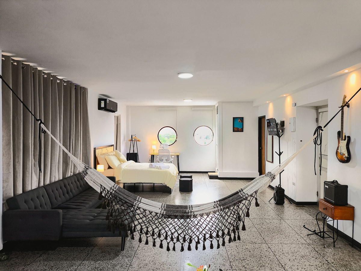 ¡Bienvenido a nuestro hermoso apartaestudio, Su ubicación privilegiada en el corazón de Valencia ofrece rápido acceso a la zona norte y centro de la ciudad. C. Comerciales, el Cerro Casupo, parque Negra Hipólita, vida nocturna y Restaurantes El Apto. es exclusivamente tuyo, sin interrupción durante tu estancia, así que relájate y siéntete en casa. ¡Disfruta de una lista espectacular de servicios, incluyendo la piscina, y del diseño único y moderno que te hará querer quedarte para siempre!