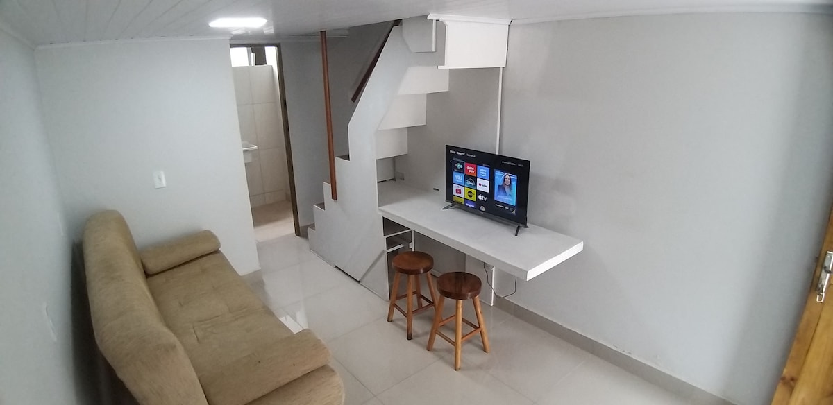 Apartamento Aconchegante com Sacada e Churrasqueira 🌊✨ Nosso apartamento é amplo, arejado e perfeito para quem busca conforto, ele possui: Um quarto com cama box de casal e ar-condicionado e um roupeiro; Sala de estar com TV Smart, Netflix e Wi-Fi, integrada à cozinha completa com todos os utensílios e eletrodomésticos que você precisa; Um banheiro; Uma sacada encantadora com vista panorâmica para a praia, com uma churrasqueira ideal para momentos de lazer.