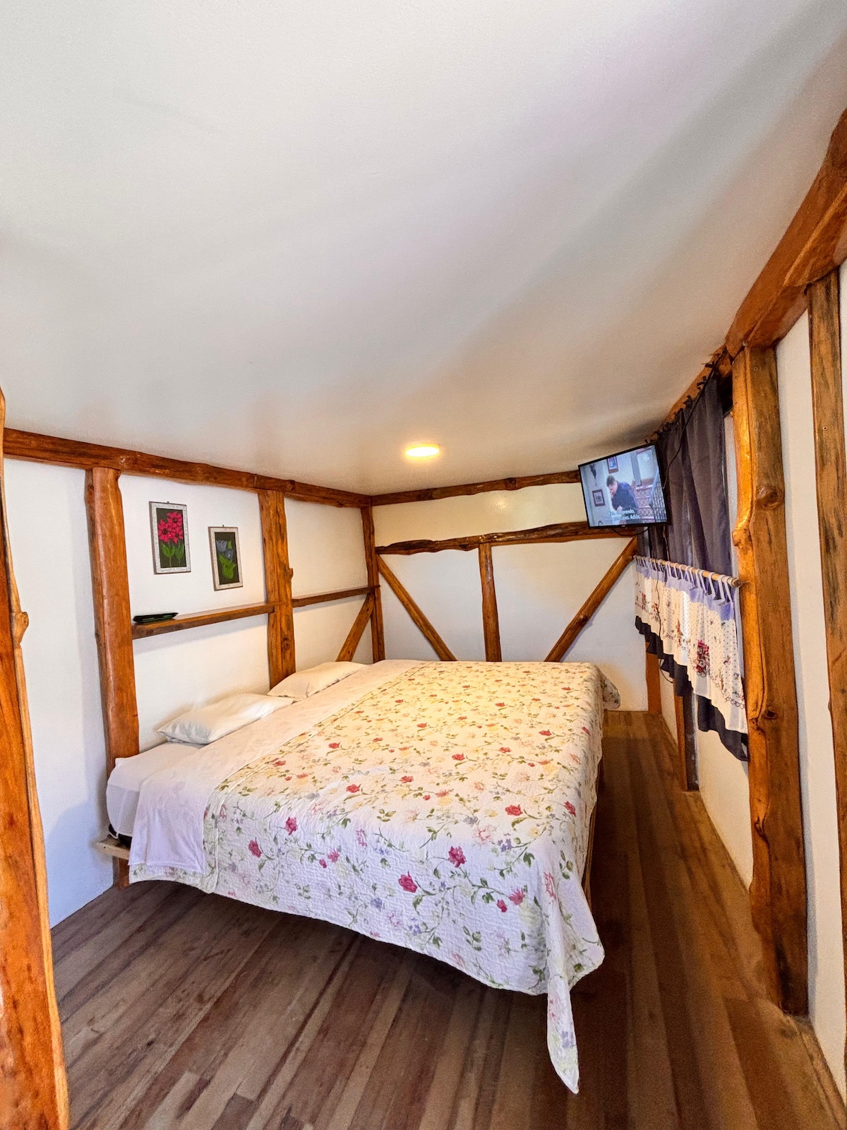 Acogedora cabañita rodeada de bosques, y hermosos senderos para realizar caminatas escuchando el sonido de la naturaleza. ubicada a sólo 7 minutos del pueblo, donde podrás disfrutar de un ambiente tranquilo y conectar con la naturaleza.