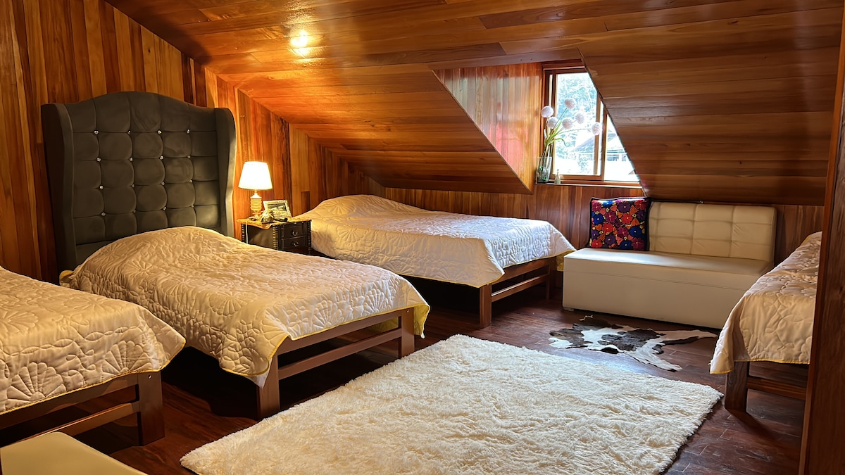 "Escápate a la tranquilidad en nuestras acogedoras cabañitas de madera, rodeadas de naturaleza y aire puro. Perfectas para parejas, familias o viajeros que buscan descanso, privacidad y conexión con la naturaleza. Cada cabaña está equipada con lo necesario para una estancia cómoda, con detalles rústicos y un ambiente cálido. Disfruta del sonido de los árboles,una fogata bajo las noches estrelladas y la rica comida de la selva Central ¡Te esperamos para vivir una experiencia inolvidable!"