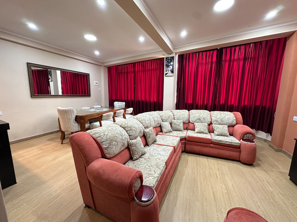 Ven y relájate en Chanchamayo 🌳🌿🌈☀️. A una cuadra espaldas del Precio Uno y la carretera central. Departamento completo y espacioso, ubicado en avenida principal de fácil acceso y salida, lugar tranquilo y muy seguro. Cerca de muchos restaurantes, tiendas y un parque.