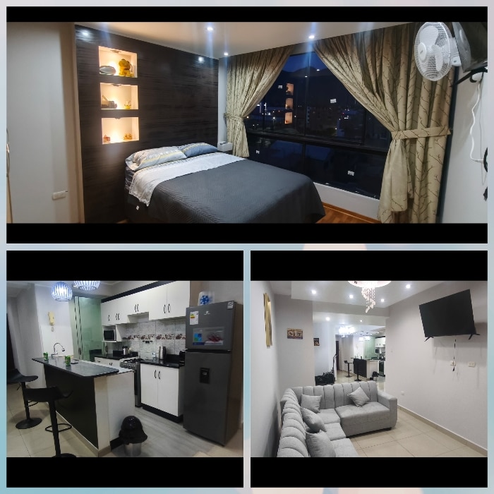 Moderno apartamento de 3 cuartos en HUANUCO, Con todas las comodidades y servicios para una placentera estancia de los huéspedes. Muy buena ubicacion fuera de la ciuidad para que disfrute de la naturaleza y tranqulidad. Ubicado en Huanuco- Huanuco a 4 minutos de la Laguna del Río. Apartamento equipado al 100% con todo lo necesario y está en el 4to piso y cuenta con hermosas vistas. En el tercer piso tenemos una hermosa TERRAZA con lindas vistas que se comparte con los demás huésped.