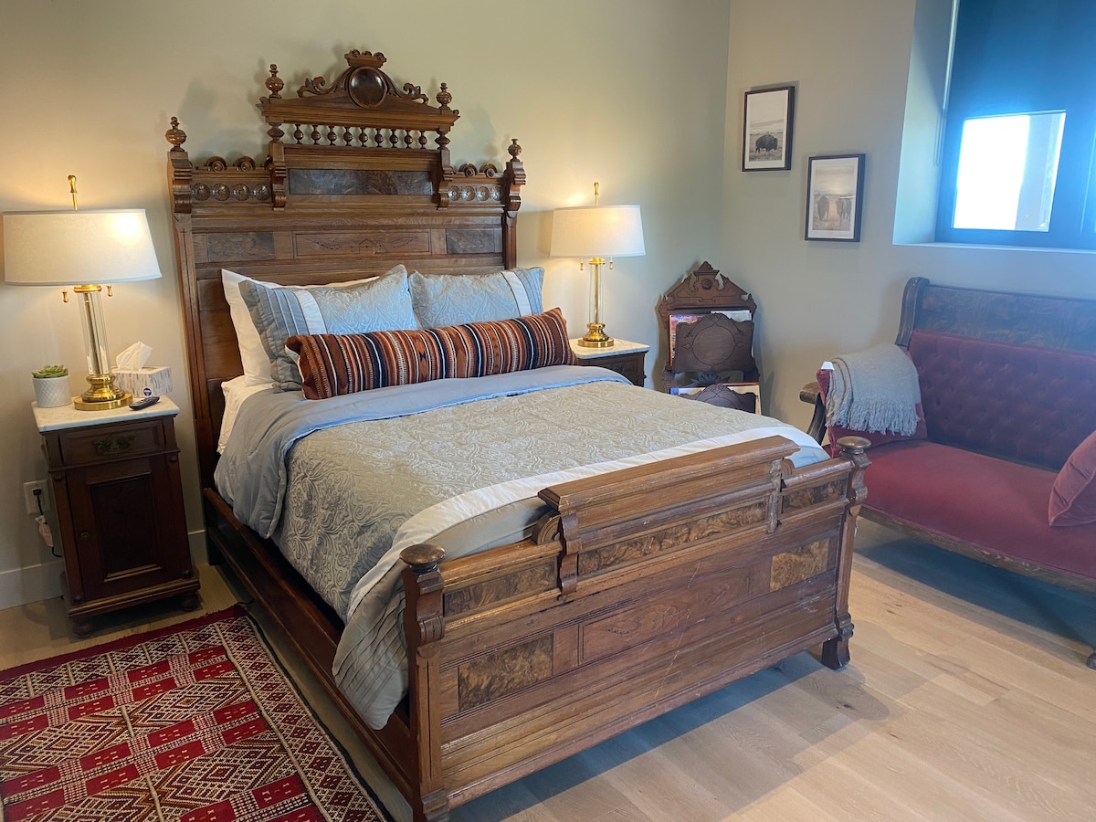 This rustic & charming suite featuring two french doors that open up to allow for morning sunlight or evening sunsets. Sleep under the stars! Large back deck for romantic evenings. Pathways that lead around the property. This suite is perfect for romantic getaways, proposals, romantic picnics and retreats. The Tavern is located just 8 min from town and just minutes from multiple wineries. We offer a quiet suite for you to relax in.