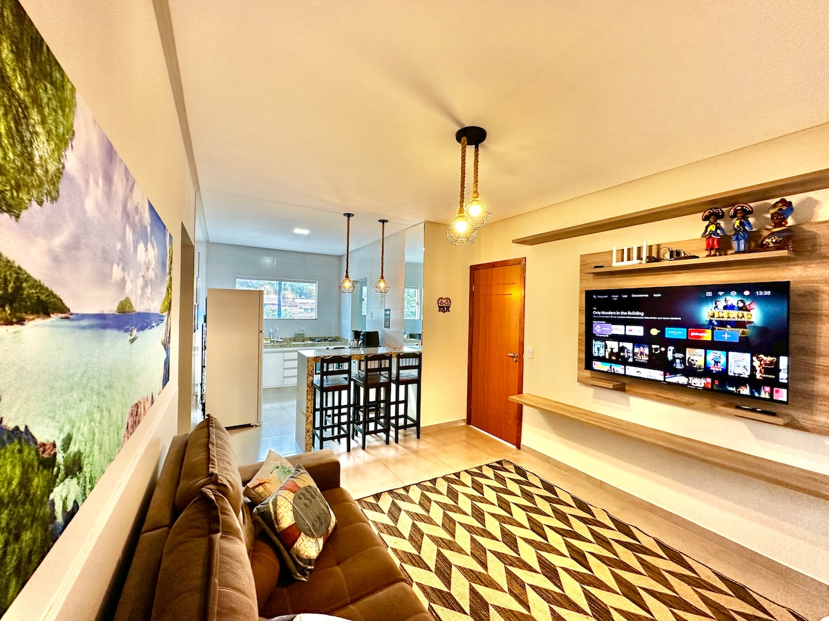 CasaCharmeConforto Arraial dispõe de 2 suítes, cozinha completa e PISCINA PRIVATIVA. Está localizado em área nobre de fácil acesso a Rua Mucugê e praias. MÁXIMO PERMITIDO: 8 pessoas. Os hóspedes gostam muito da localização. 2min de carro do centro. 3min carro do Eco Parque. Ideal p/ quem deseja curtir e ao mesmo tempo relaxar em um ambiente aconchegante e seguro. Temos roupa de cama/banho, ar condicionado, lavadora de roupas, Wi-Fi, churrasqueira. Recomendo carro. Check in/out flexível.