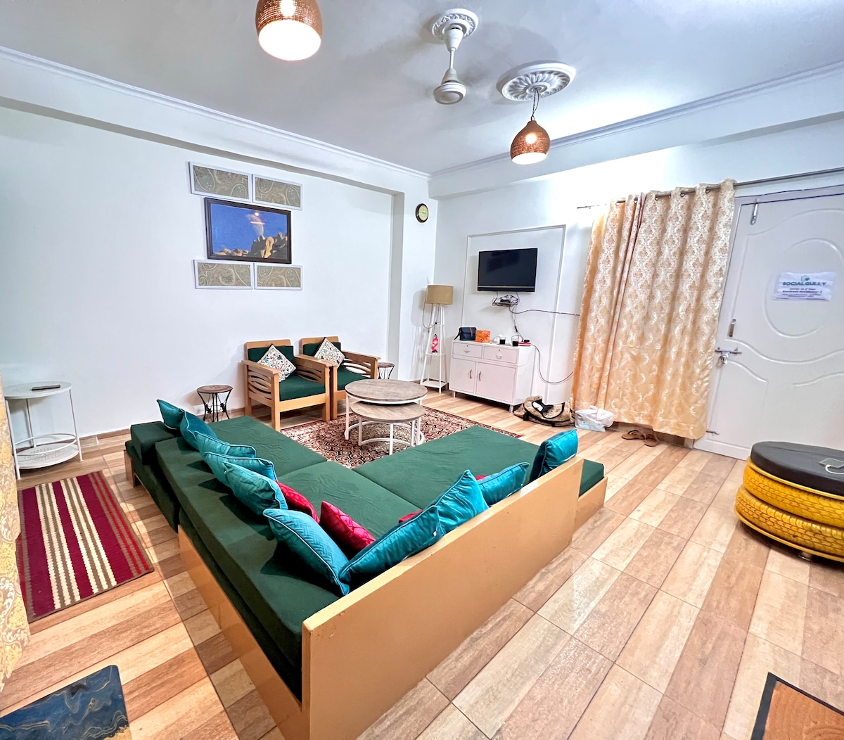 Book your stay now for a harmonious blend of comfort & serenity. A tranquil homestay just 200m away from the sacred Ganges River. The spacious hall invites you to unwind, practice yoga, or simply enjoy moments of peace with mountain views along with Ginger Tea and high-speed Internet with Netflix, Prime, Hotstar, etc on the house! and ready for Work+Vacation. Located near the City Center, AIIMS, home is a peaceful sanctuary for your stay in this spiritual city. This is your place to BOOK NOW!