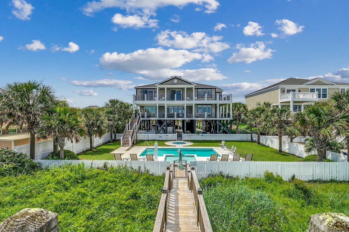 Our home is a true beachfront property with its own walkway to the beautiful sand. Wake up every morning to the sun streaming in your windows (or don't - close the shades!) and listen to the sounds of the crashing waves. Our home is part of a small community (10 homes) and we share a large common pool. It's perfect for large families that want a space to hang out after a long day on the beach. There is ample parking for multiple cars and guests. Please see note about pet fees below!