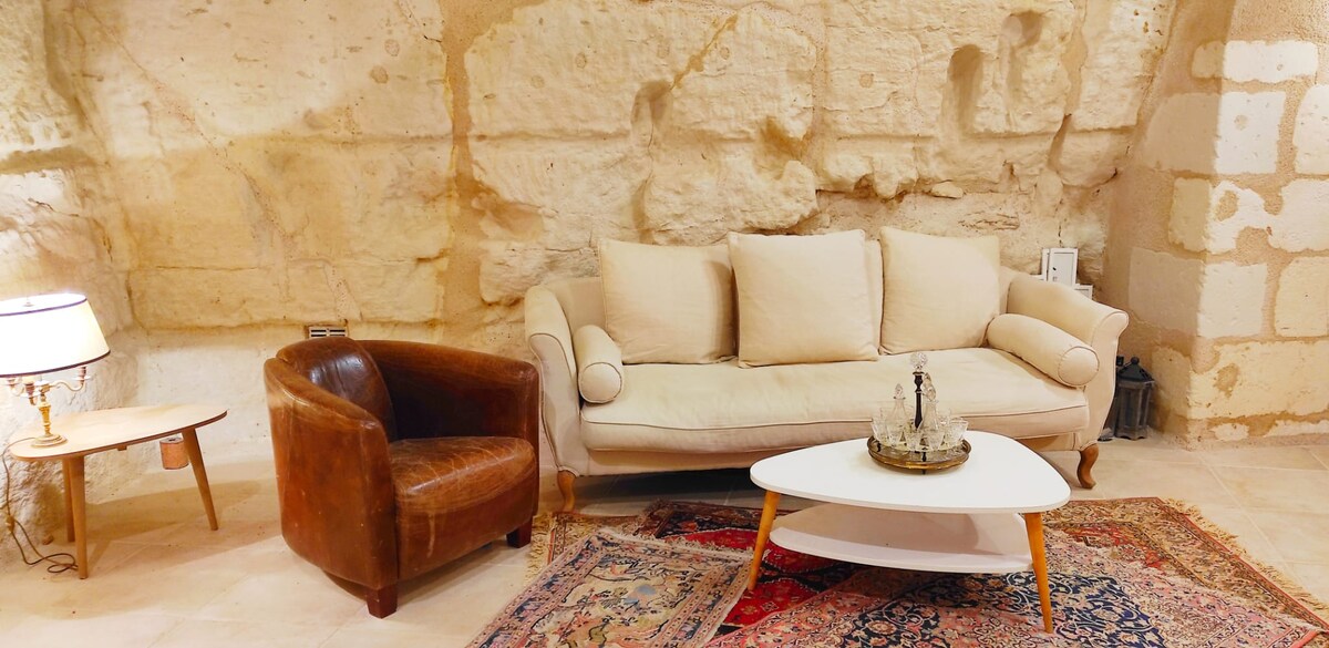 Ce logement est tout sauf ordinaire. Après avoir gravi quelques marches vous entrerez dans un espace de 84m² entièrement creusé dans la pierre de Tuffeau, célèbre pour son utilisation lors de la construction des plus grands châteaux.