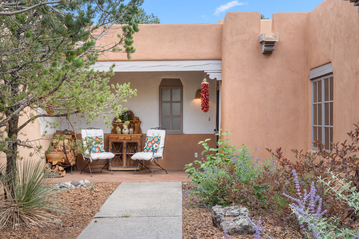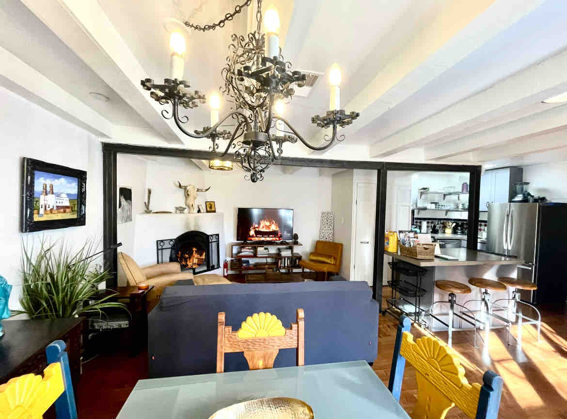 Luxurious 3-bedroom 3-bath condo in El Corazon de Santa Fe compound 3 blocks from the Plaza and the historic core of Santa Fe. 30 minutes to Santa Fe Ski Area. Many of the best museums and restaurants are just a 5-10 minute walk. 7-minute drive to Santa Fe Opera center. Secure climate-controlled underground parking for two cars with elevator to ground level entrance to condo. Bathrooms equipped with hair dryers, designer soaps and robes. Three gas log fireplaces. Free use of El Corazon gym.