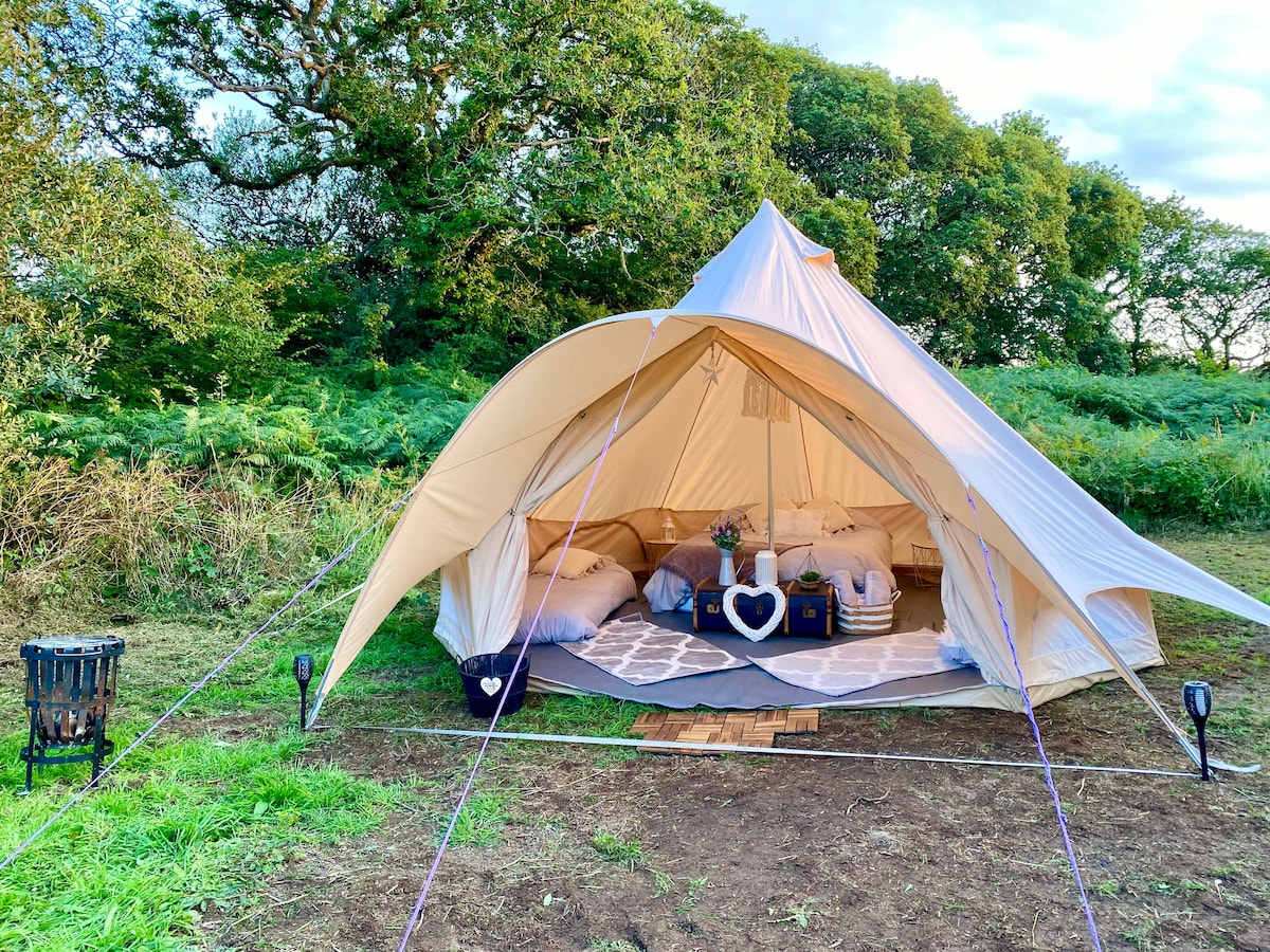 Thornbush Glamping is located in the heart of the Pembrokeshire countyside, a stones throw away from it's beautiful coastline. Just outside the village of Camrose, we are in the ideal spot to go off and explore stunning beaches and local attractions. Our bright, quirkily designed bell tent is the perfect space to relax, unwind and enjoy a glam camping experience. Equipped with a rustic kitchen, eco-friendly compost toilet and wooden shower shared with one other tent, our campsite has everything!