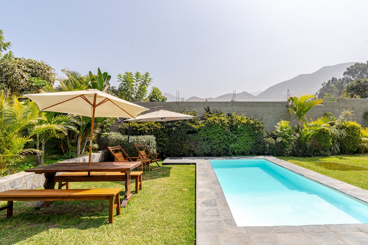 🏡¿Te gusta salir con tu familia y también con tus mascotas? 🐶🐱 💫Esta es la casa ideal para que correteen tus niños y tus mascotas en el amplio jardín. Desconéctate y disfruta con una rica parrilla, caja china, y la vegetación. Contamos con juegos de mesa, sapo, fogatera, amplia terraza frente a la piscina. ➡️La casa está totalmente equipada tiene dos baños afuera, además del baño dentro de la casa. ➡️ Encuentranos en Insta gram para videos y más fotos⤵️ 🔥🔥 mountain_lodge_cieneguilla.