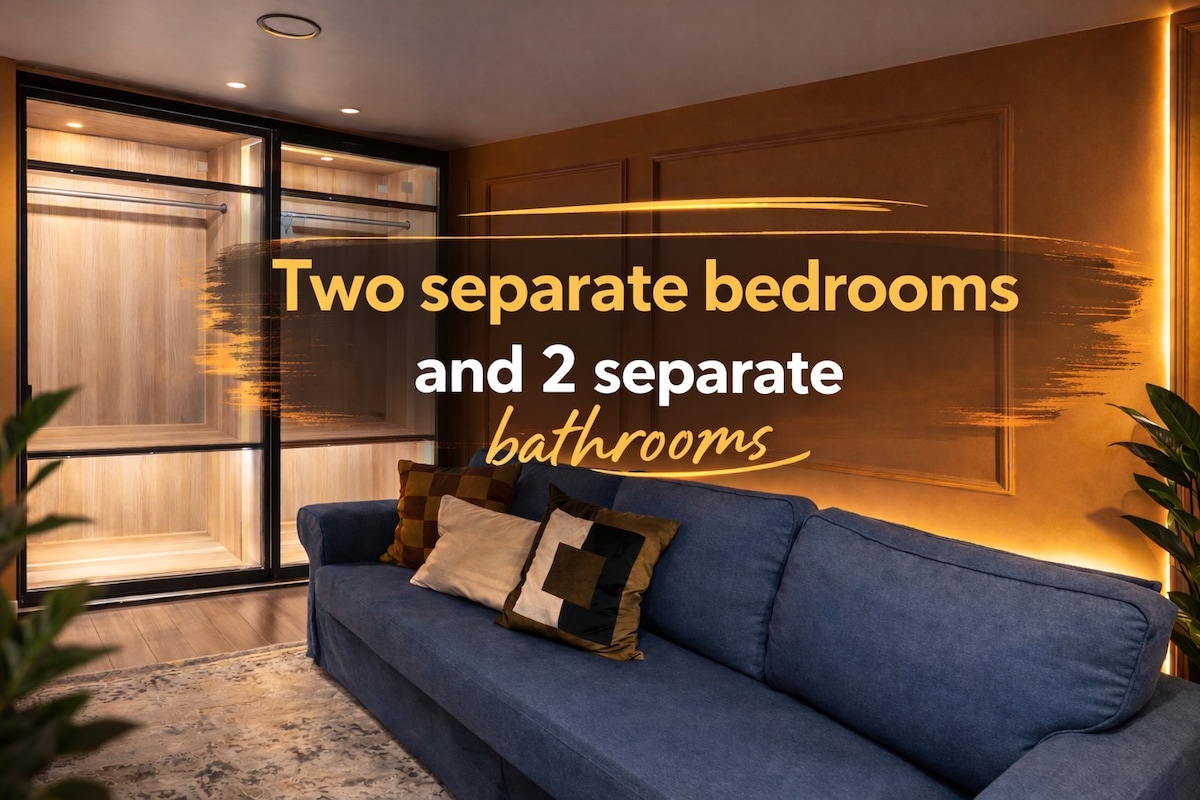Another gem in our highly popular Architecture Series, again in the Art Deco style, is located in a palatial building in the absolute center. As always, not just aesthetics was in focus, but also the ultimate comfort for up to four people. Two separate bedrooms and two bathrooms with a living area in the locus of the apartment. Many high-end features (including a drier, a rarity in Budapest). Despite the busy location, the apartment is also quiet, ensuring a good night's sleep.