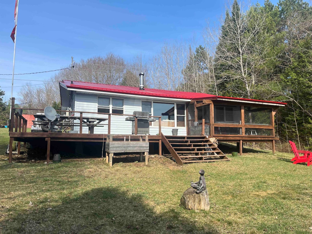 Pine Point on Kosh has glistening water on 3 sides, views of flaming sunrises and sunsets, and the perfect spot for a campfire. Spend all day relaxing and swimming off the brand-new dock, enjoying the island-dotted views, or have a cookout on the deck. Just 2 hrs from the GTA, this 4 season cottage is located at the tip of a peninsula on beautiful Kasshabog Lake in the Kawarthas. It offers an expansive 550ft of weed-free waterfront, 2.3 acres of land, and privacy from the neighbours.