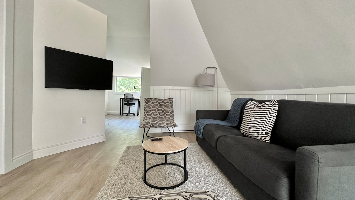 This memorable place is anything but ordinary. A fully equipped Tiny Home nestled in a quiet area of Peterborough. Beautiful high ceilings and windows. We are the first Tiny Home in Peterborough and in the Spring and Summer the Magnolia trees and crabapple trees fill the view. With an outdoor fire area as well as an outdoor BBQ and eating area, this private and quiet spot is indeed one of a kind.