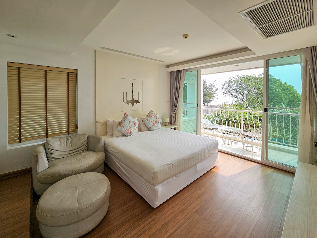舒适的海景阳台,配备加大双人床