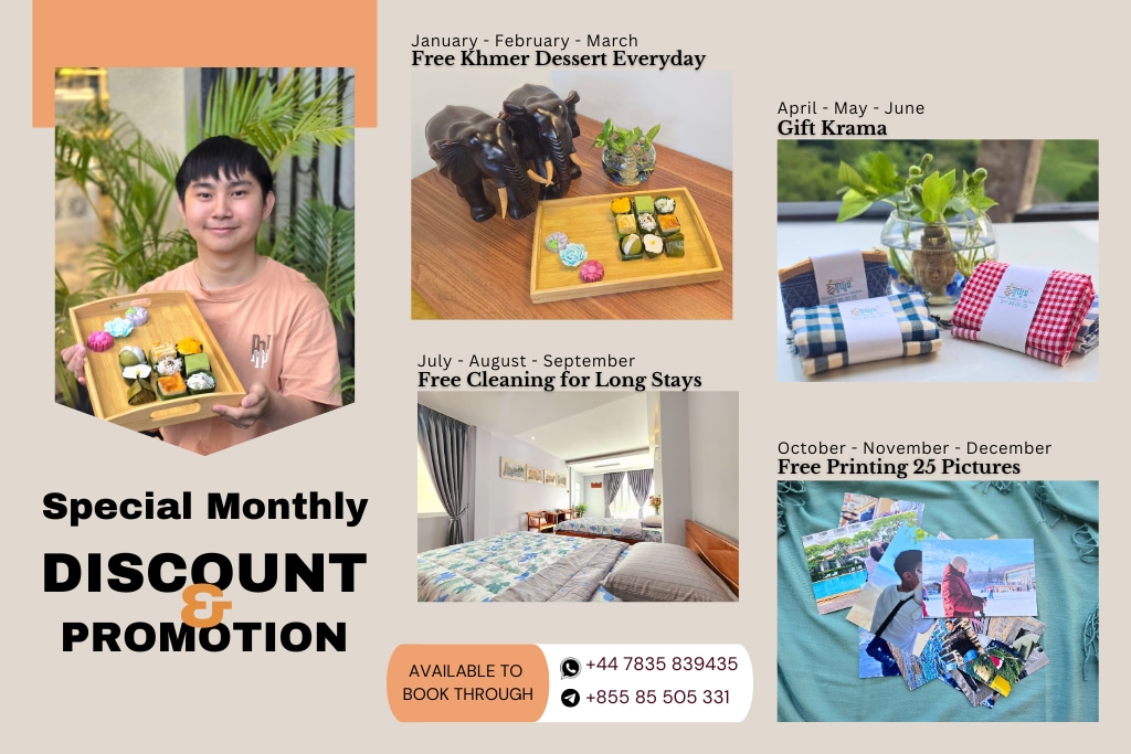 Escape from the crowded city and enjoy the beautiful scenery at a house outskirt of the of city. It’s 15mins drive to the biggest mall in Phnom Penh. With our small garden, you can relax and experience the best moment of your vacation or family time.
