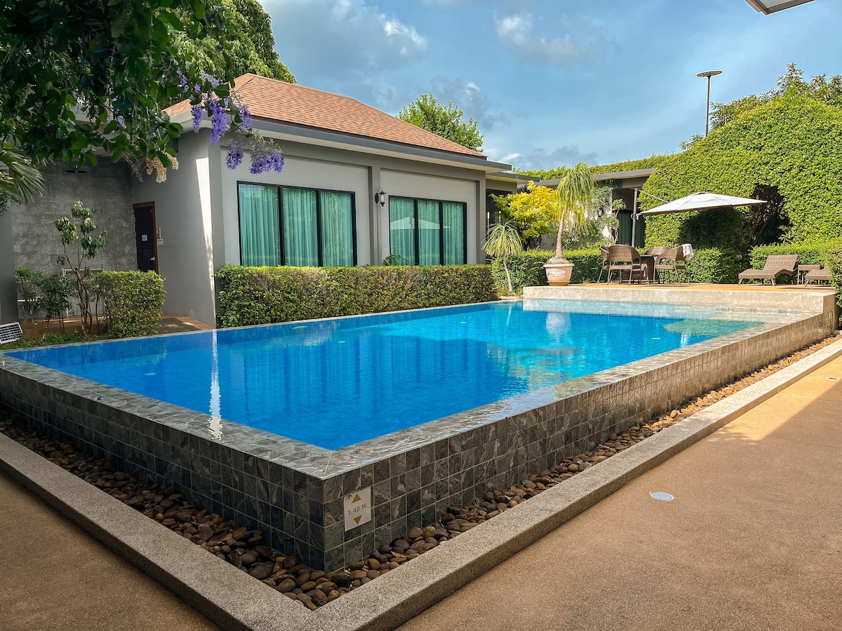 We offer a pool villa with private studio-like & fully furnished room with private bathroom and toilet for both either short and long term stay. Our room also equiped with a couter bar suitable for light cooking and washing as well. Last but not least, we have a relaxing swiming pool to enrich your stay. Our place is fully walled to protect your privacy and safety. We are located 50 meters from the main road which will ensure that you would have no traffic noise to disturb your stay.