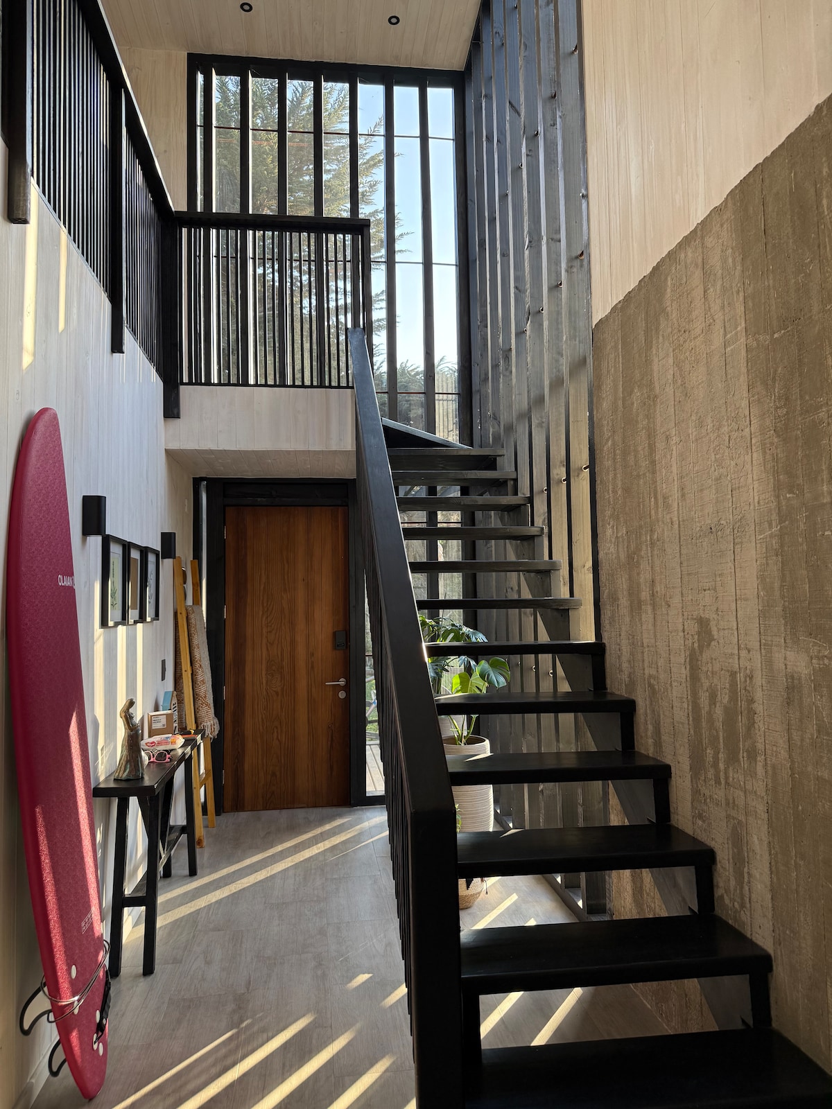 Casa nueva de lujo en Pichilemu a pasos de la playa y Punta de Lobos. Despierta con vista al mar en un sector residencial y tranquilo, a solo 5 min de la playa caminando. Para 5 personas, pieza principal en suite con cama King y terraza privada, 2 baños, cocina full equipada, terraza con parrilla y reposeras, espacio para niños y mascotas. WiFi Starlink, escritorio, calefacción, seca toallas, secador de pelo y más. Cuenta con estacionamiento privado.