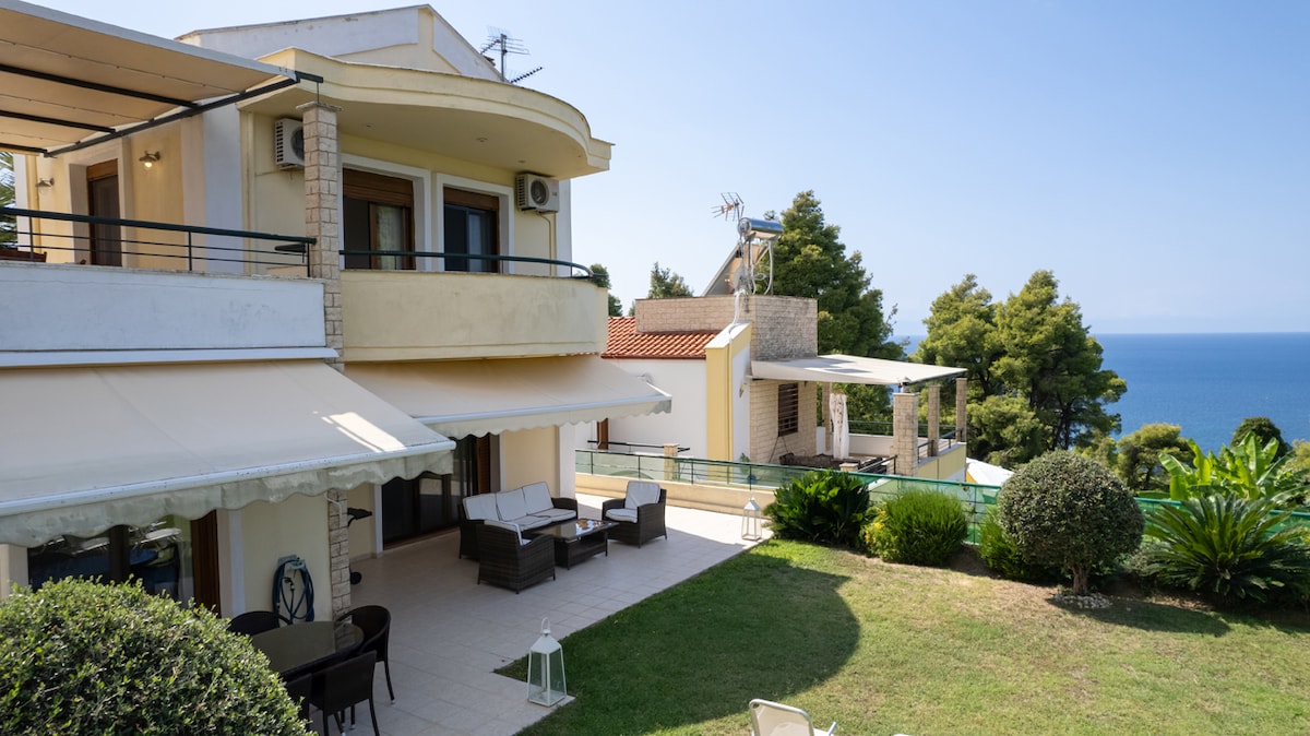 Villa into Sani's pine woods forest. 20' on foot from Koutsoupia beach, Sani beach, Sani Resort and Marina. Garden and balcony in addition to the unique scenery to spend quality time with your loved ones. Private parking spots: 2 The unique position of our villa ensures that you get both the relaxation you seek but also you can have all the amenities that Sani Beach Provide.