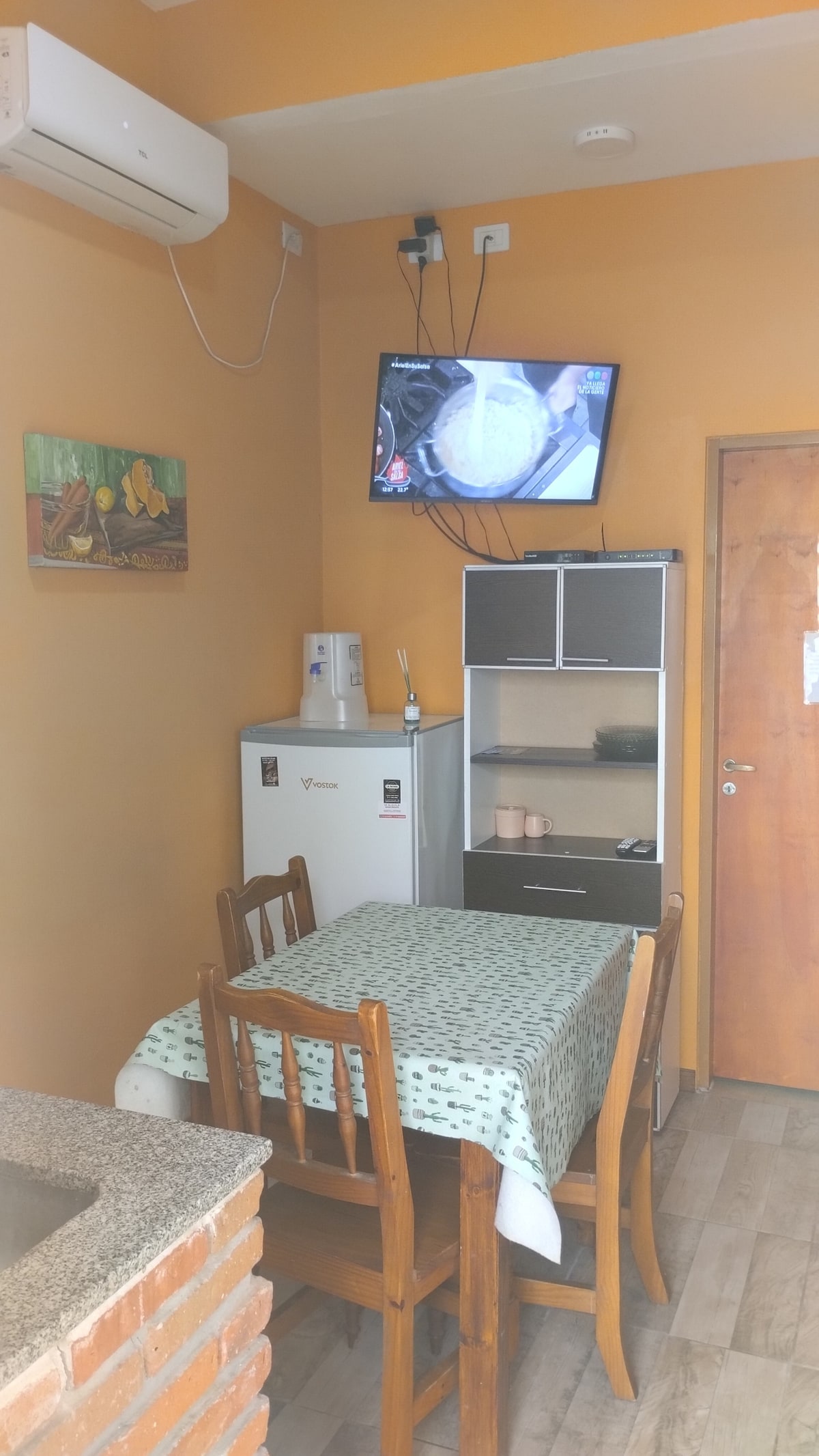 Ofrecemos 2 departamentos (60mts2 c/u) y una cabaña (32mts2) en una casa quinta (habitada por sus dueños), con área común compartida con otros huéspedes y con nosotros, jardín, pileta y quincho, tres parrillas y estacionamiento para auto, toda la ropa blanca y desayuno seco (de cortesía), Wifi, DTV, A/A. Todos los departamentos cuentan con una cama matrimonial y 2 camas de 1 plaza y media (sofa cama). Ideal para descansar y relajarse y compartir con otras personas amantes de la naturaleza.