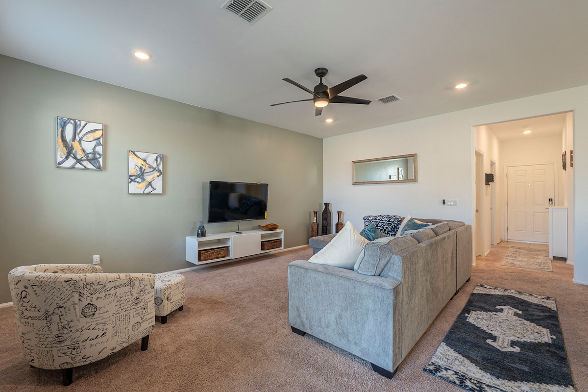 Nicely sized, perfectly arranged, entire home with 3 bedrooms, 2 baths, fenced yard, located in a family-friendly, park community! Close to Davis Monthan Air Force Base, IBM, UofA Tech Park, Amazon, Kino Sports Complex, GEM shows, Vail, Rita Ranch, Tucson Raceway, Pima County Fairgrounds, etc. Just a few blocks from I-10, it's easy to get to Benson, Sonoita, Tombstone, Bisbee and Douglas. It is convenient to get into downtown and central Tucson from the freeway as well.