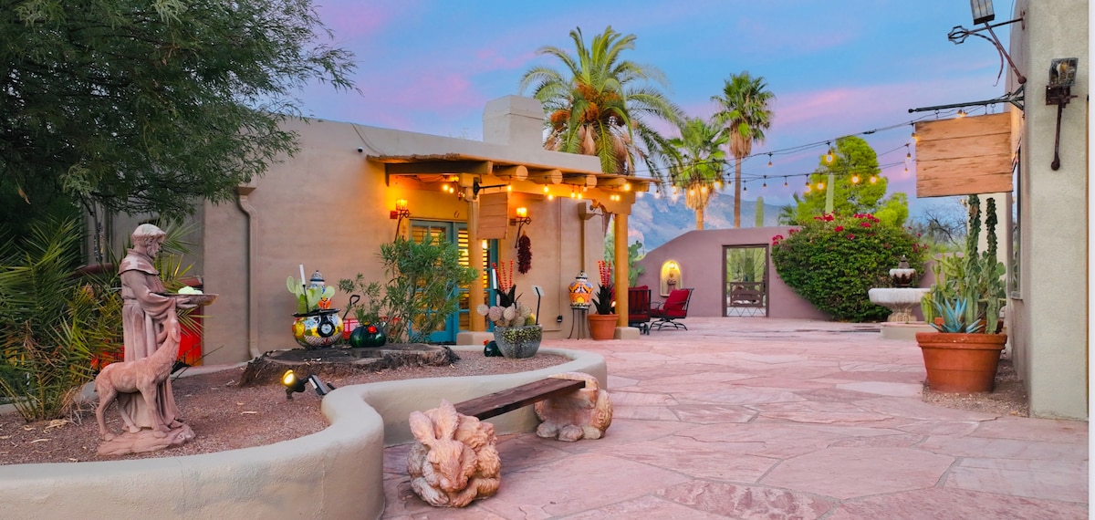 CASITA DEL REY is a charming, private, 560-sq foot cowboy guesthouse on a stunning 5-acre estate, including pickleball court, and stable facility with donkeys! We have it all...charm, nature and comfort! A gorgeous pool, sunset patios & chance to get up-close to donkeys! Amenities: SleepNumber bed, kitchenette, refrig, stove top, basketball court, picnic/BBQ griarea, walking paths, high-speed WiFi/HDTV, shopping/dining/UofA w/in 5 minutes! AirBNB “Top 1%” (2020)