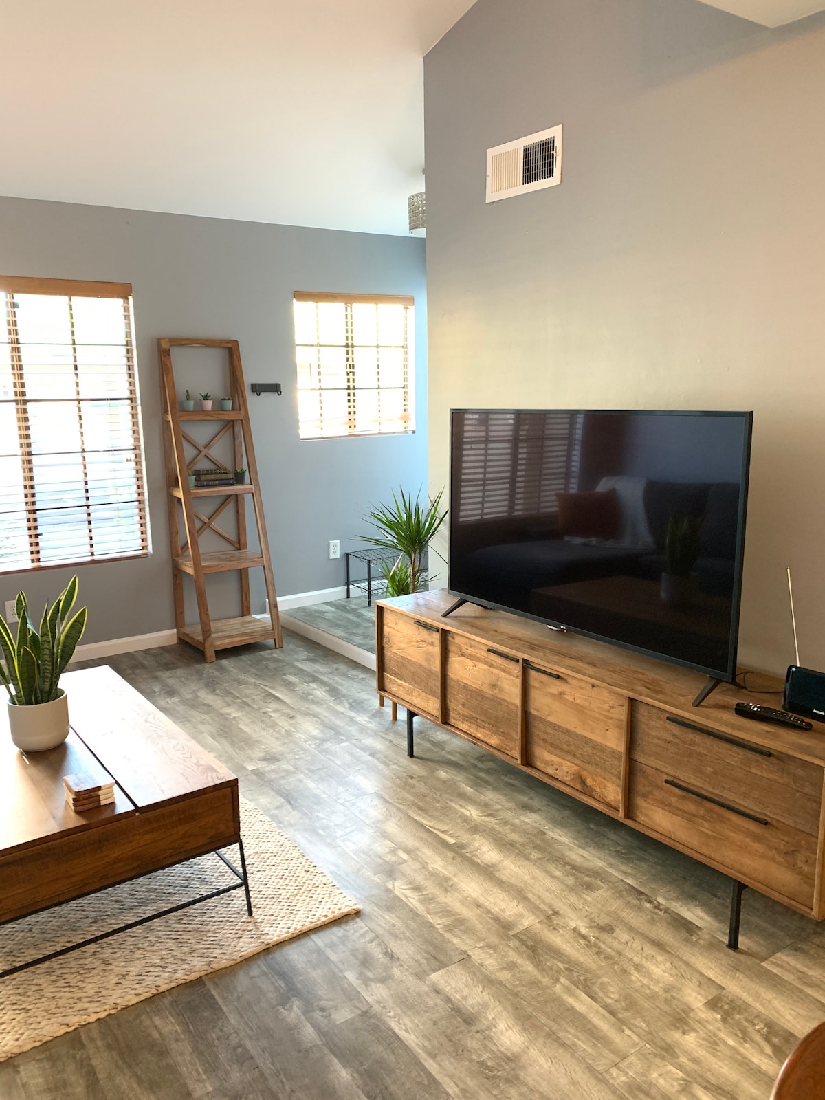 Welcome to our Tempe Getaway. Recently updated, this home ready for you to arrive and relax. Our townhome is located in a prime location giving you the shopping and entertainment needed to get the most out of your stay. The home features two queen beds in the master bedroom and one queen in each of the 2nd & 3rd rooms. Two Stories, 1,656SqFt, 3 Bedroom, 2.5 Bathrooms with Inside Laundry 2 dedicated covered Parking spaces directly behind unit Community pool is one block away in the complex.