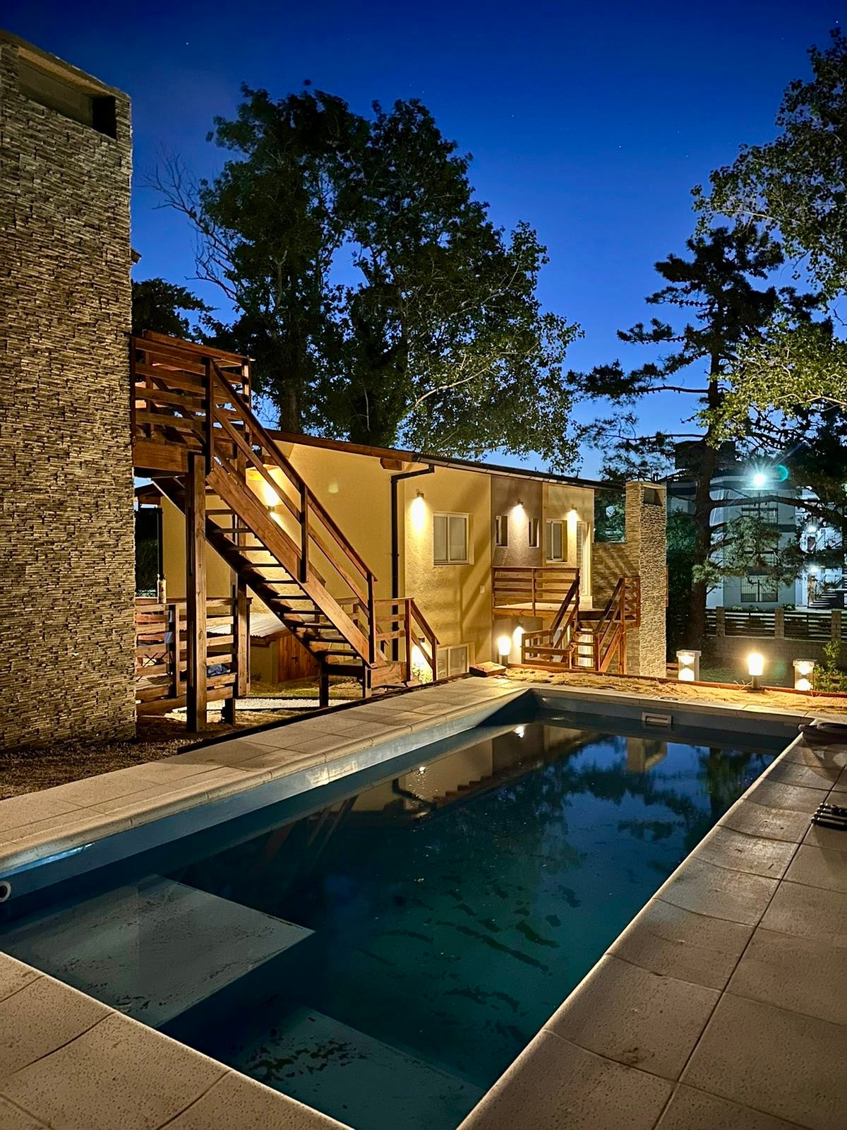 Ideal for resting. Cabin in the Villa Alpina complex. Very close to the beach and the Carilo shopping center. In the bedroom 1 double bed + 1 mattress + 1 practical bed. In the living room a sofa bed for 2 people. Full kitchen with table. Refrigerator, microwave, oven. Balcony with grill and views of trees. 1 full bathroom. Wifi, 2 TVs, Netflix. Dry breakfast and cleaning. Heated pool, jacuzzi, sauna, locker room, gym and children's games.