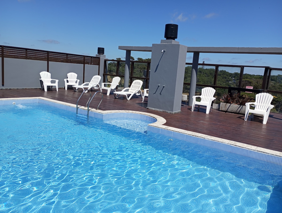 Difruta de un departamento moderno, luminoso, para relajarte y que tu estadía sea única. Rodeado de un gran jardín y amplia piscina para uso exclusivo de verano. Cuenta con cochera. Pinamar, un lugar para disfrutar del bosque y la playa, todo el año. Cerca de supermercados, centro comercial, restaurantes y bares. Tu estadía será inolvidable!