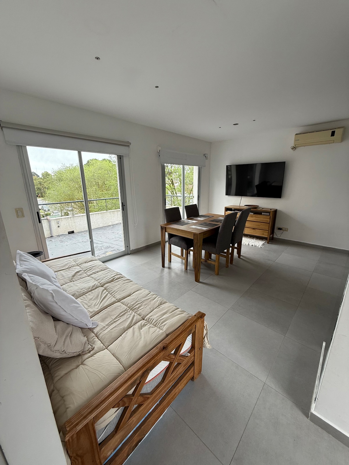 Departamento 2 ambientes moderno en pleno centro de Pinamar a cuadras del mar super comodo, seguro, bien iluminado, Wifi Alarma monitoreada Detector de humo Detector de monóxido de carbono Smart tv NETFLIX YOUTUBE NO TIENE CABLE Microondas Todos los utensilios de cocina Parrilla La ubicación es muy cómoda y esta en planta baja , ideal para familias o parejas que quieran pasar unas lindas y cómodas vacaciones en pinamar! No brindamos servicio de toallas. No grupo jóvenes.