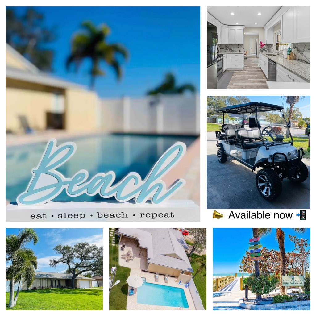 享受带恒温泳池的房源,距离 2 个海滩 1 英里,配备高尔夫球车