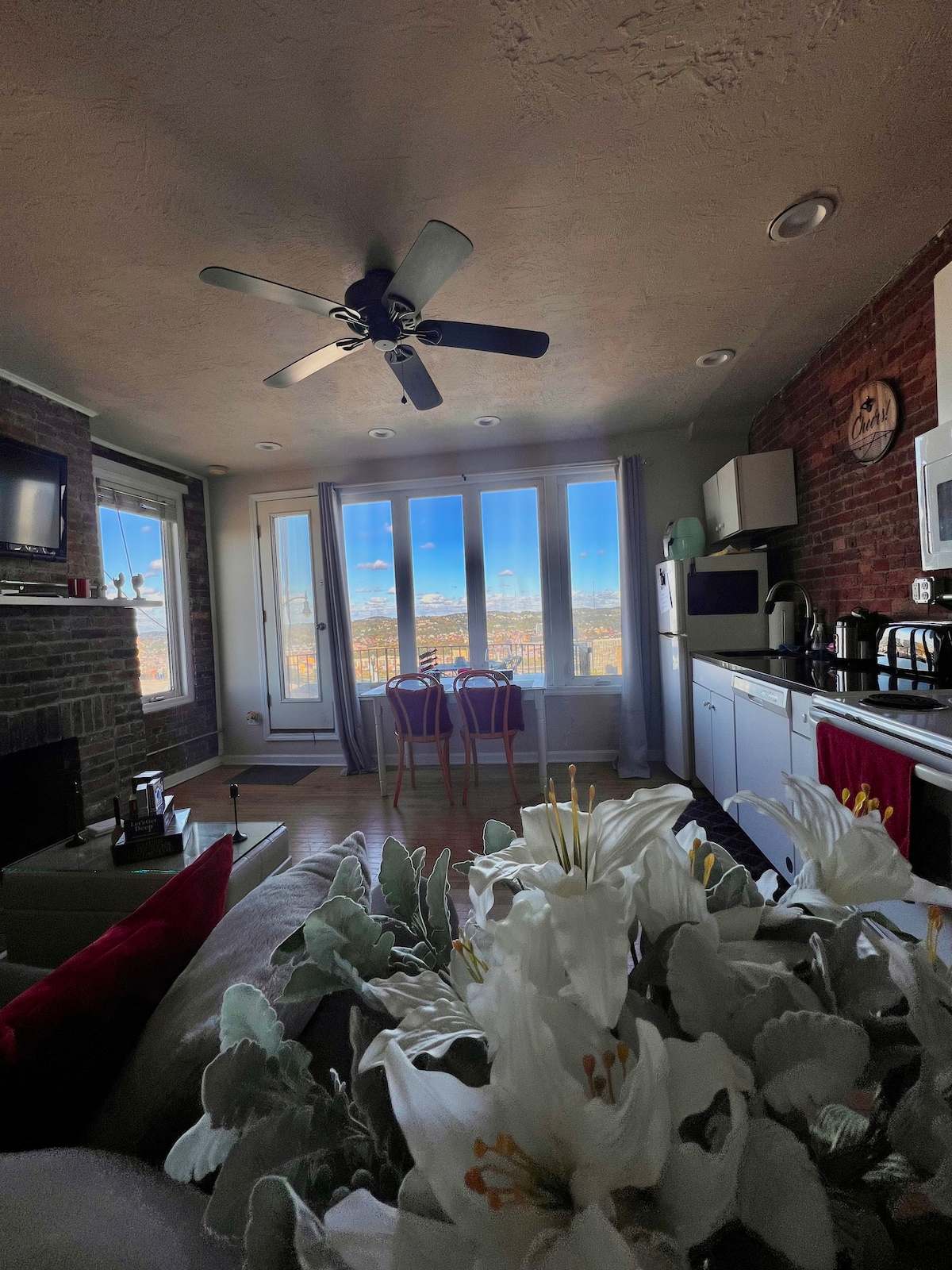 One of the few furnished rentals on Grandview Ave, the famous road with million dollar views in Pittsburgh! Completely remodeled to the studs as a short-term rental, our place exudes Pittsburgh charm. Work from home with spectacular views of the city from your vintage desk, relax on the couch and watch the 60" TV, or just hang out on the king size bed! We're just a block from Shiloh St., with 10+ bars & restaurants, but you're always able to cook at our fully stocked kitchen!