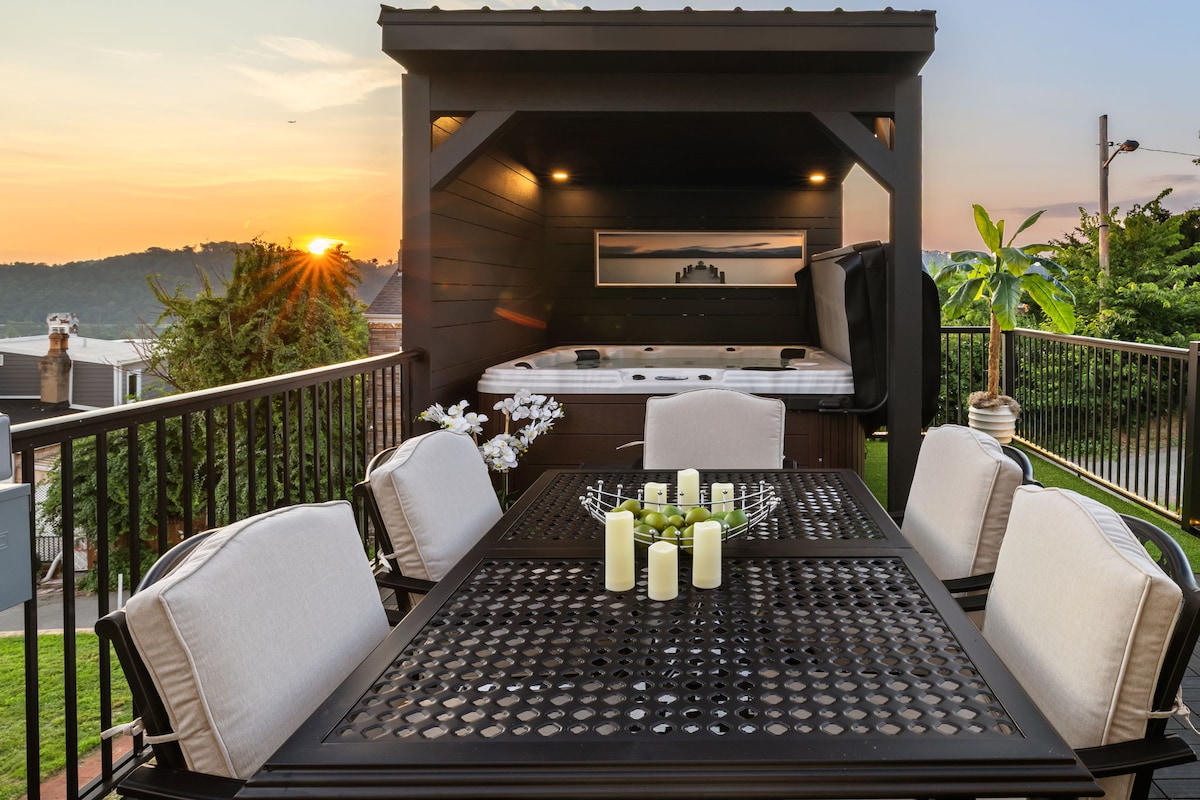Welcome to Steelview!! This luxurious and private duplex offers stunning views of downtown Pittsburgh, entertainment rooms and floor to ceiling windows! This two bedroom two bathroom home is nestled in the hills of Southside Slopes, next to Mt Washington and is 2 minutes from downtown and 5-10 minutes from all major event centers and hospitals. Enjoy your time on three private decks and terrace overlooking the city or go for a hike on the Emerald View hiking trails right from your front door.