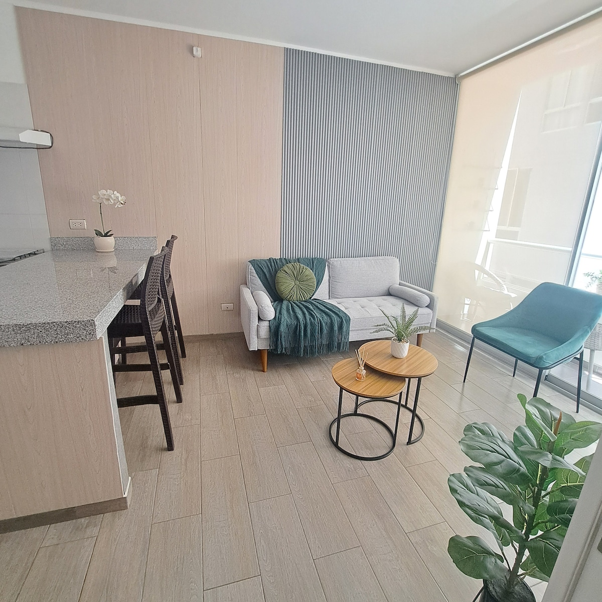 🏡 Descubre la comodidad y elegancia de este moderno departamento de estreno en Piura. Con un estilo minimalista y detalles que inspiran calma, ofrece todo lo necesario para una estancia perfecta: Smart TV, PlayStation, cocina equipada, WiFi y seguridad 24 h. Disfruta de un espacio tranquilo y acogedor, ideal tanto para trabajo como para descanso, a pocos minutos del Real Plaza.
