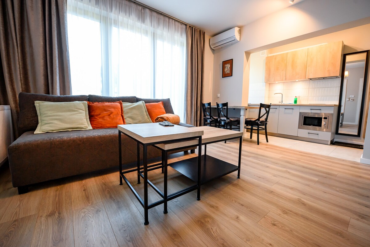 Zafunduj sobie odpoczynek i wyciszenie w Komfortowym, znakomicie wyposażonym apartamencie składającym się z sypialni z oddzielną kuchnią i balkonem z pięknym widokiem na las i góry. Idealny dla pary. Apartament mieści się na 1 piętrze kameralnego i całkowicie odnowionego budynku składającego się z 6 mieszkań, które są dostępne tylko dla naszych Gości. SUPER LOKALIZACJA –Spokojna i zielona okolica, cicho, bezpiecznie! 20 minut spacerem do Centrum Miasta i na Deptak.