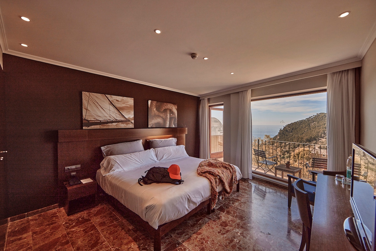 明亮的双人房,带侧海景