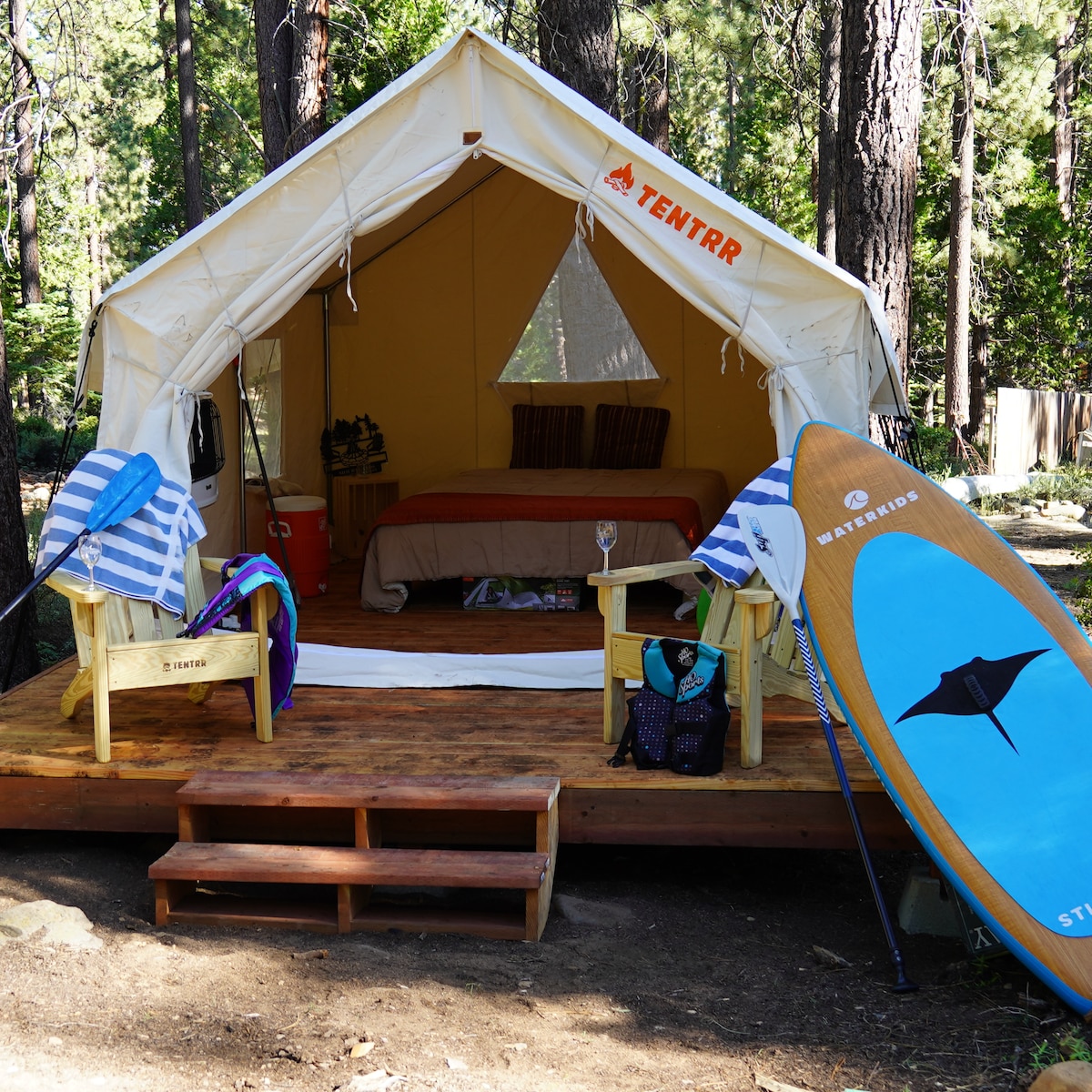 A Beautiful Glamping Tent with queen size bed (LINENS & PILLOWS NOT PROVIDED); private hill top setting overlooking Lake Wildwood. Holiday Market & several restaurants within just a few minutes. 15 minutes to Grass Valley/Nevada City, 8 minutes Lake Englebright, 10 minutes to Bridgeport and the Yuba River. Enjoy the wildflowers along the Buttermilk Trail, and so much more! Entire Venue can also be rented for events for up to 150 people. Electricity and running water at each tent site.