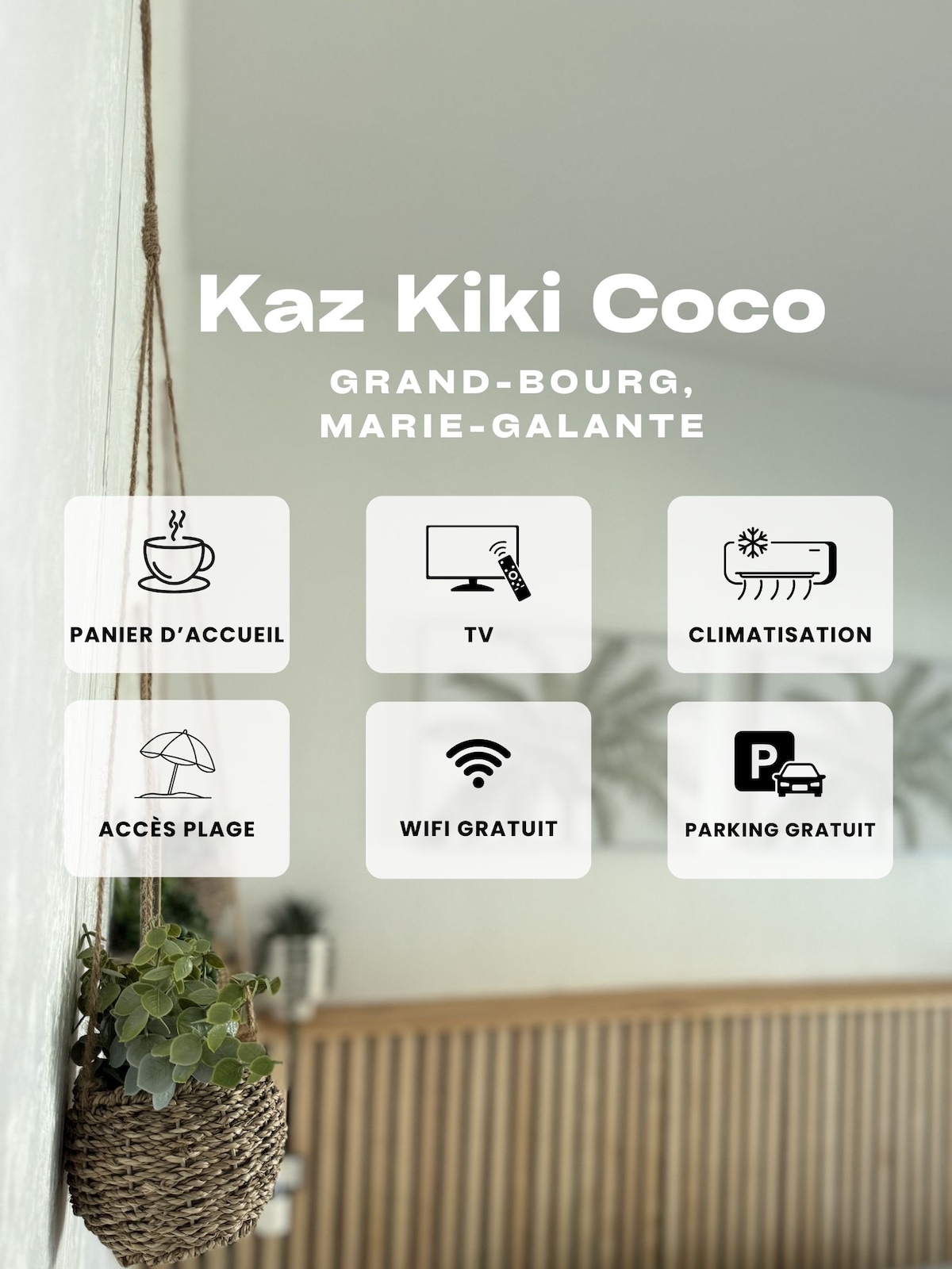 La Kaz a Joujou est un espace chaleureux et convivial, située dans un lotissement. Vous aurez accès aux plages du bourg à pied et du centre ville de Grand Bourg en 10 minutes. Le logement est équipé d’un grand lit baldaquin 160*200, d’une cuisine équipée, d’une salle de bain avec water, d’une connexion wi-fi, d’une TV et d'une climatisation. Le jardin est partagé avec les propriétaires. Nous proposons une table d'hôte le soir avec des produits frais et locaux.