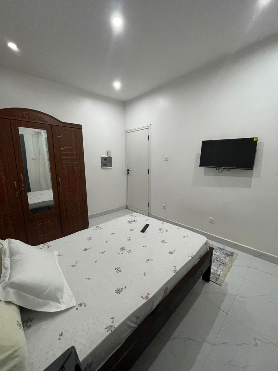 Brand new & elegant 1 bedroom+bath studio. On 2nd floor with high end finishes. 24/7 security, video surveillance, generator, water pump, elevator, daily cleaning & electricity cost included in rent. Room has fridge, AC, TV, Microwave & other appliances. Located on a central street in Mermoz at walking distance from restaurants, shops, Auchan Cite Keur Gorgui, and Olympic Club. At less than 5 minutes drive to Sea Plaza shopping mall, Auchan Mermoz. And 15 minutes to downtown and Almadies.