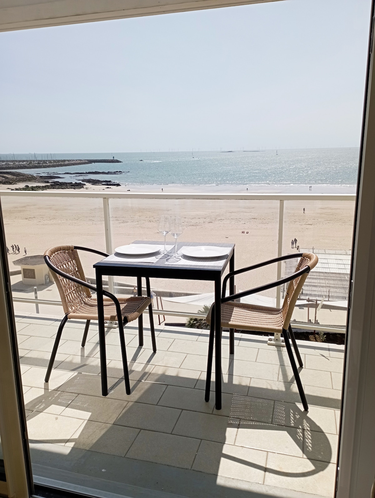 Petit nid non fumeur y compris sur la terrasse, la plage au pied, la terrasse de 10 mètres carrés découvrant la vue sur la superbe baie de Pornichet La Baule Le Pouliguen, il est équipé d’un vrai lit avec sommier à lattes, escamotable, qui offre un vrai couchage et permet deux pièces en une ( salon / chambre ). Le calme absolu est assuré par la présence de 2 baies vitrées, dont une en double vitrage, ainsi qu’un volet roulant électrique : nuits au top ! Dîners face au coucher du soleil 😎