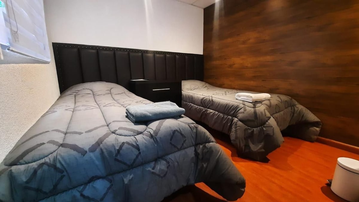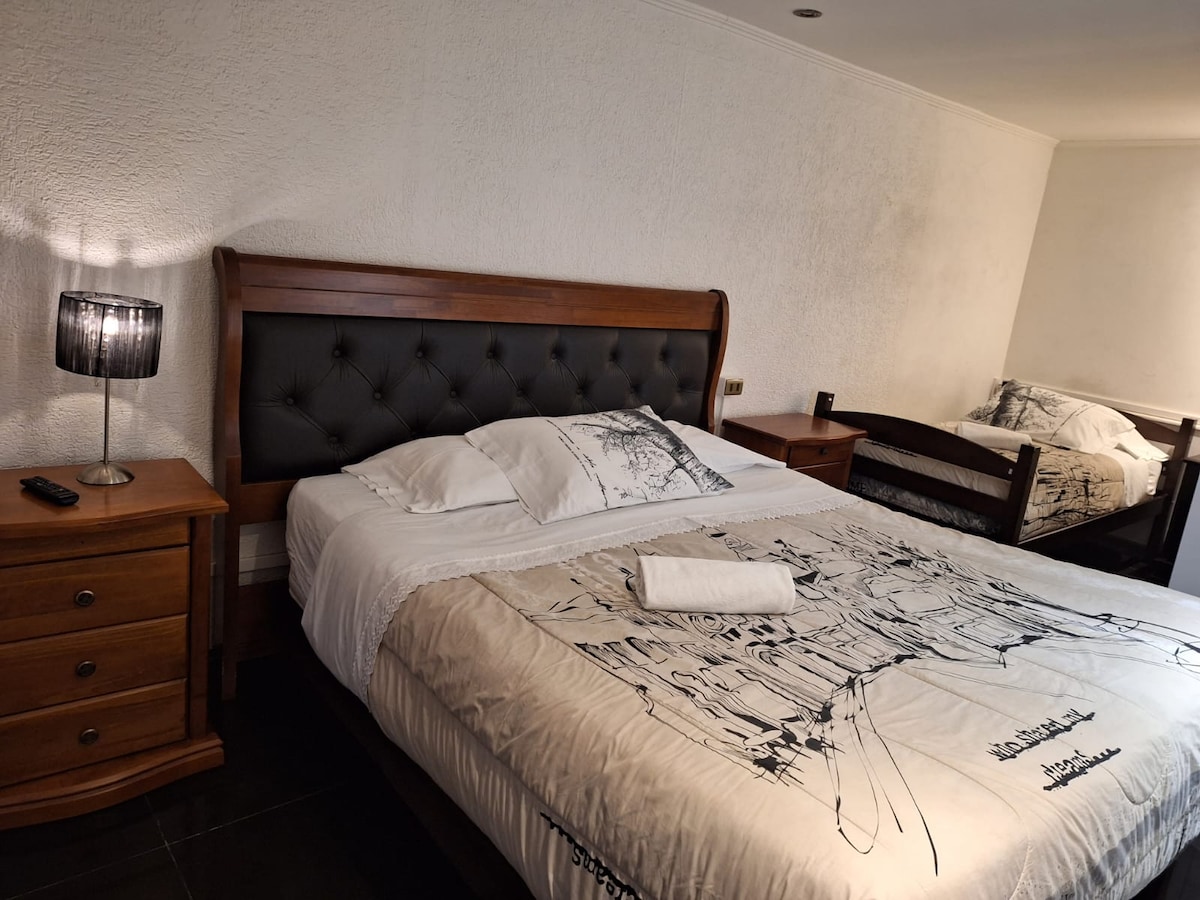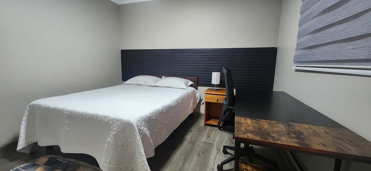 Habitación cómoda, con baño privado ideal para familias y trabajo que buscan un espacio amplio, tranquilo y seguro.