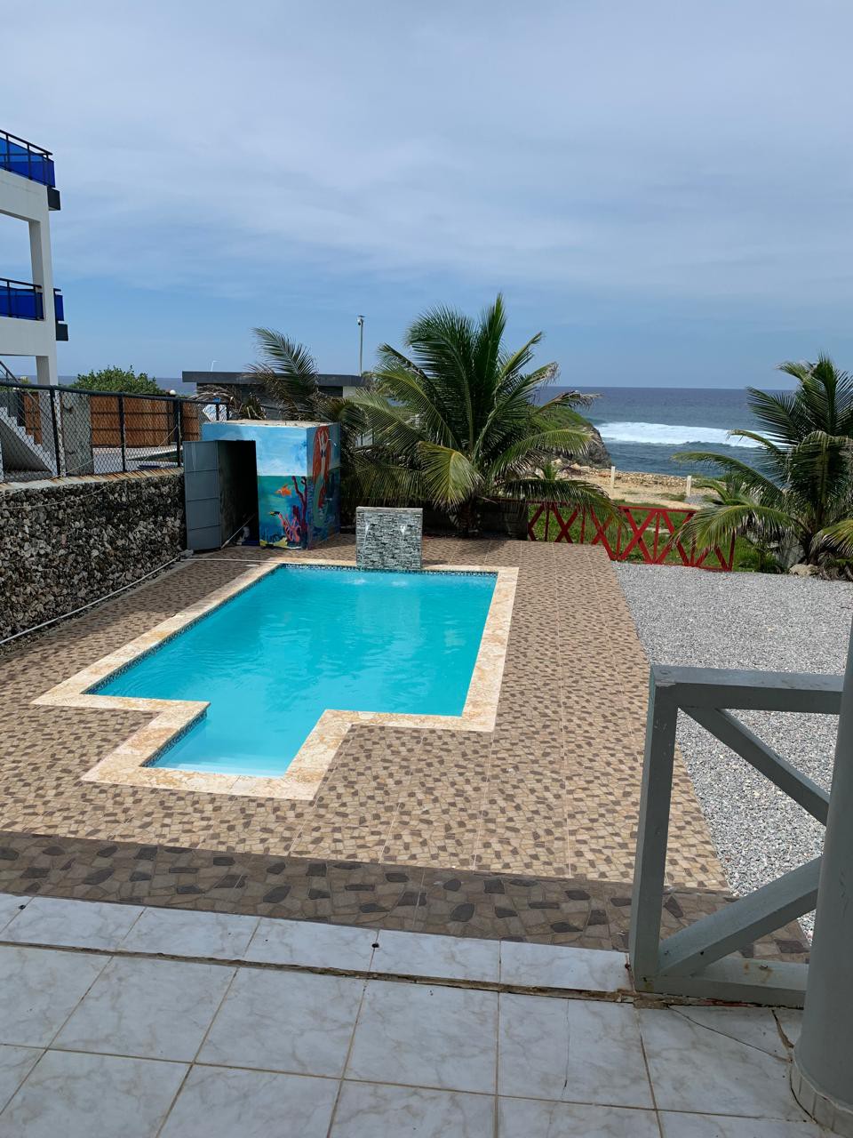 Spacious, 1 bedroom condo with large living area inside with pull out couch, dining table for 4 people and well equipped kitchen. Balconies with dining table for 6 people, 2 sunlounge chairs, and a second shaded balcony with 2 chairs and small table. Bedroom with king size bed, blackout curtains and ceiling fan. The condo is located on the very top which makes it very private and has a 180 degrees view of lush tropical garden and the Atlantic Ocean Large community pool and 24h security.